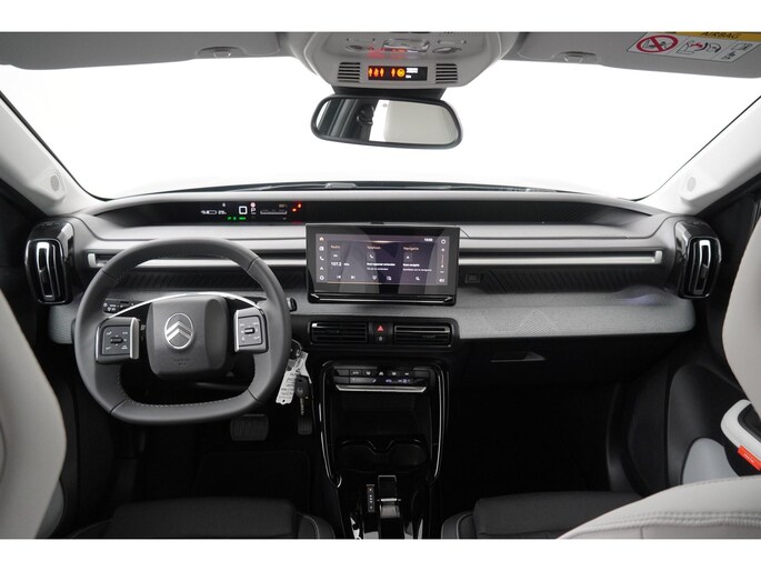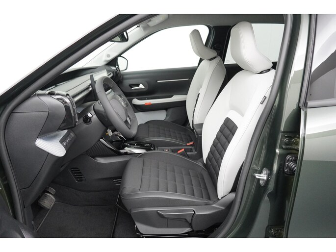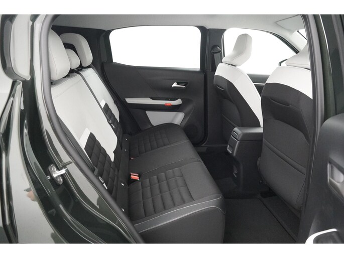 Hij biedt volop ruimte, deze Citroen Ë-C3 Aircross, en dankzij zijn elektrische aandrijving is er ook plenty vermogen voor een dynamische rijstijl. Natuurlijk is de actieradius mede afhankelijk van de weersomstandigheden, maar een volle acculading is over het algemeen voldoende voor de gewone dagelijkse ritten. Het opladen kan gewoon 's nachts, terwijl je slaapt. Dit is een nieuwe auto, hij is nu direct leverbaar. Relaxt én fit op weg? Dan geniet je zeker van de comfortstoelen. De uitmonstering van deze auto wordt gecompleteerd door onder meer 17 inch lichtmetalen velgen, LED koplampen, adaptief dempingsysteem, geluidsisolerende ramen, dakspoiler en in delen neerklapbare achterbank.