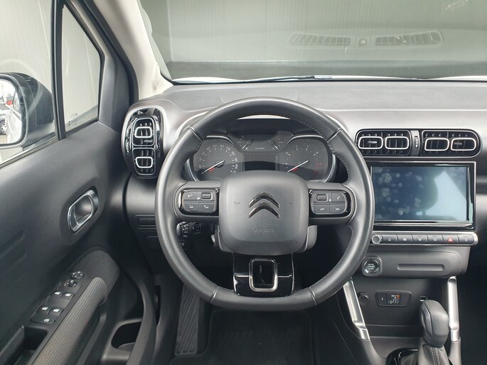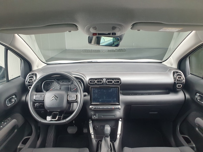 Een vergeten muurtje, een verborgen paaltje? Dat gebeurt niet meer, dankzij de achteruitrijcamera. Met uw smartphone maakt u overal contact met de auto. Remote services geven direct inzicht in uiteenlopende functies en zijn op afstand te activeren. Een optie die de veiligheid verhoogt, is de bediening vanaf het stuur van het audiosysteem (met DAB-radio!) en het full map navigatiesysteem. Als u wilt kunt u beiden zelfs met uw stem bedienen. Ook is de auto voorzien van automatische airconditioning. Achter het stuur van deze Citroën bent u niet alleen. De auto kijkt als het ware met u mee tijdens de rit. De regensensor schakelt de ruitenwissers in als het nodig is en de automatisch inschakelbare verlichting doet de lichten voor u aan. En dan is deze auto ook nog eens voorzien van cruise control, keyless entry, lederen stuur, centrale deurvergrendeling met afstandsbediening en boordcomputer.