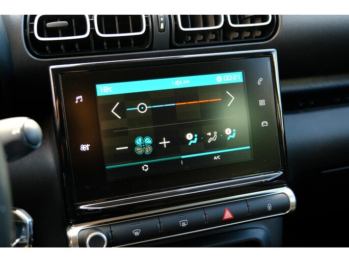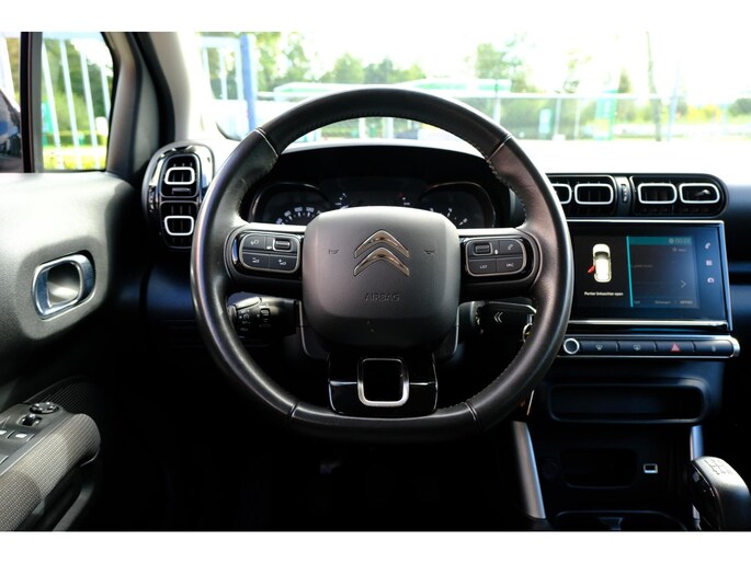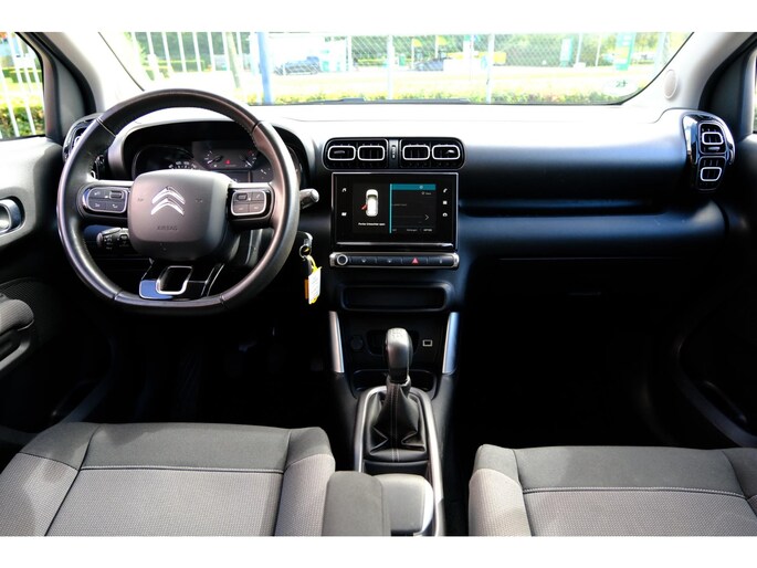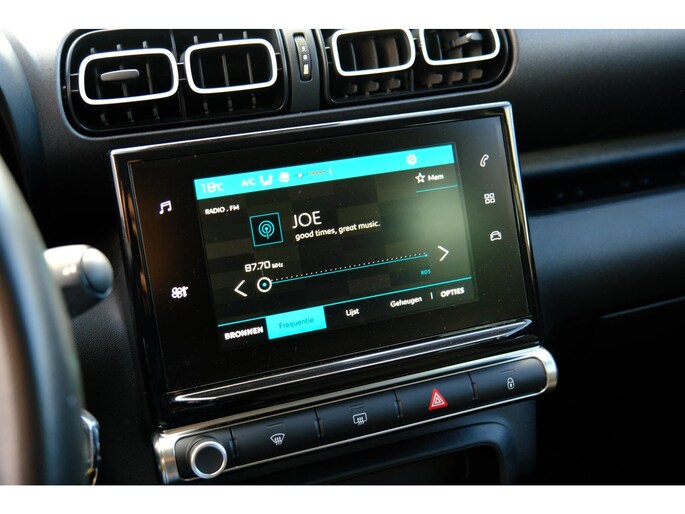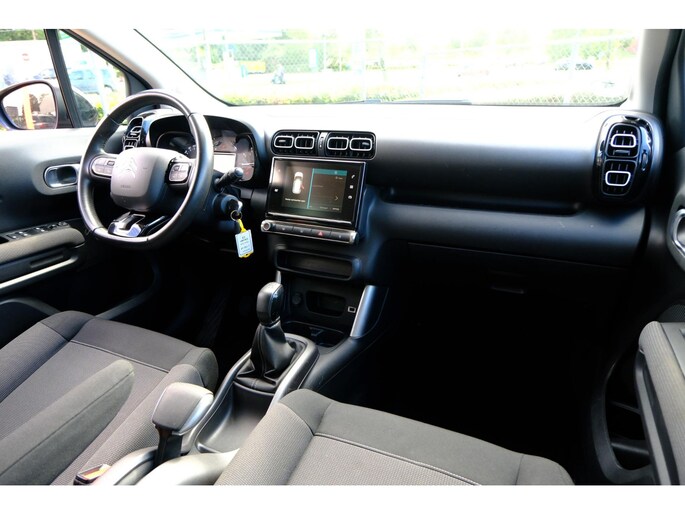 Deze Citroen C3 Aircross is 'connected'. Belangrijke functies worden permanent gemeten en zijn uit te lezen via een speciale app, ook op afstand. Gemakkelijk en veilig is bediening voor het audiosysteem met knoppen op het stuur. De sensoren van de achteropkomend verkeer waarschuwing houden zicht op de dode hoeken achter u. Te weinig afstand tot de achterligger? Het systeem geeft direct een signaal. Parkeersensoren helpen u tijdens het in- en uitparkeren. Een stabiele en comfortabele snelheid houdt u feilloos aan met de cruise control. Ook airconditioning, lederen stuur, centrale deurvergrendeling met afstandsbediening en boordcomputer zijn aan boord.