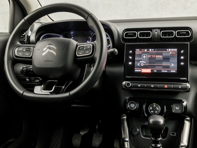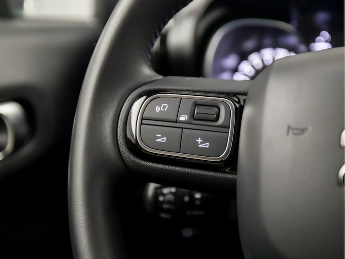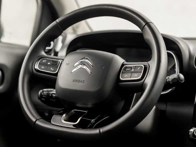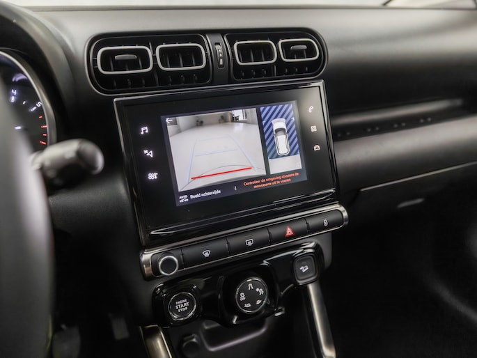 De functie van de 360 graden camera in deze auto is om u een totaaloverzicht van de omgeving te geven, ongeacht hoe smal de straat of parkeerplek is. Hoe is het met de banden, de accu en andere onderdelen? Connected Services maakt het inzichtelijk, 24/7 via de app. Gemakkelijk en veilig is de spraakbediening voor het audio-installatiesysteem en het navigatiesysteem. Daarbij kunt u deze ook bedienen met de knoppen op het stuur. De audio-kwaliteit is geweldig, dankzij de DAB-ontvangst. Op een drukke weg heeft u soms ogen in uw achterhoofd nodig. De sensoren aan de achterzijde nemen die functie over en geven een achteropkomend verkeer waarschuwing als een achterligger te dicht op u zit. Tot de standaard uitrusting van deze auto hoort ook automatische airconditioning. U bent in deze Citroën ook voorzien van regensensor, cruise control, keyless entry, buitentemperatuurmeter, automatisch dimmende binnenspiegel en lederen stuur.