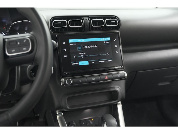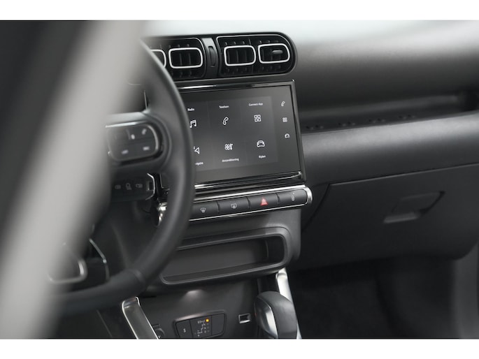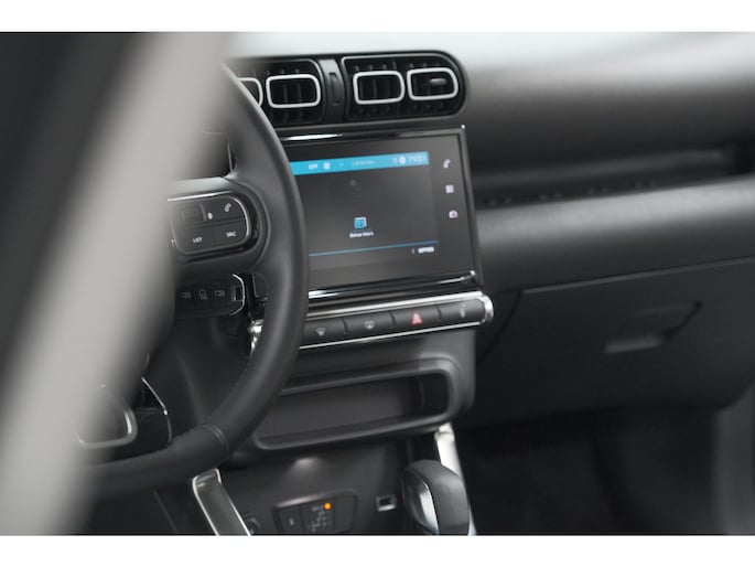 Ook over uw schouder ziet u onderweg niet alles wat er aan de achterzijde gebeurt. Daarom heeft deze Citroen C3 Aircross een achteropkomend verkeer waarschuwing. Automatische airconditioning verwarmt of koelt het interieur met een druk op de knop. Voor een storingvrije radio-ontvangst zorgt de ingebouwde DAB-ontvanger. Inparkeren zonder angst voor schade. De parkeersensoren helpen u om moeiteloos in de kleinste parkeervakken te manoeuvreren. Het drukke verkeer eist onderweg al uw aandacht op. Daarom is het goed dat deze Citroen is voorzien van diverse systemen die u assisteren tijdens de rit. Een automatisch inschakelbare verlichting neemt het waar als het donker wordt of gaat schemeren, en schakelt dan automatisch de verlichting in. Op dezelfde manier "ziet" de regensensor de eerste spatjes regen en schakelt dan de ruitenwissers in, en als het harder gaat regenen zet hij de ruitenwissers ook in een snellere stand. En deze auto heeft ook cruise control, buitentemperatuurmeter, lederen stuur, centrale deurvergrendeling met afstandsbediening en boordcomputer als standaard uitrusting.