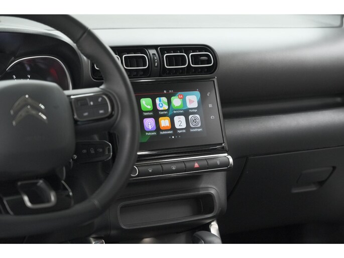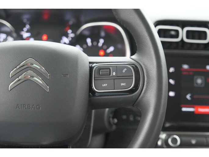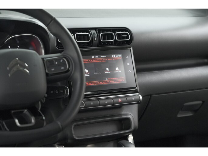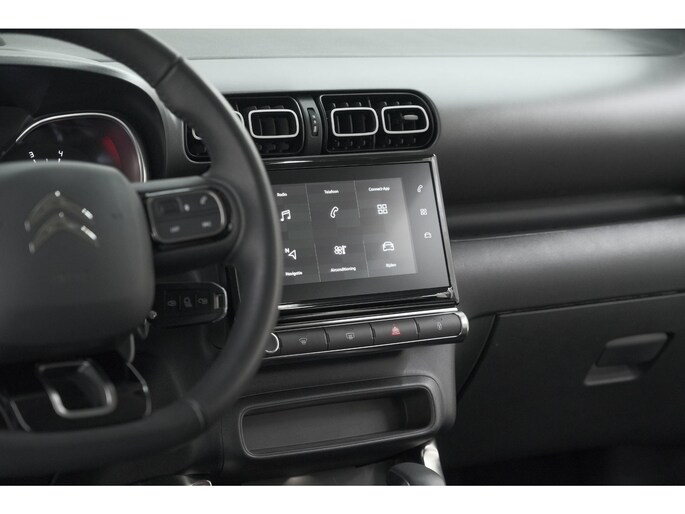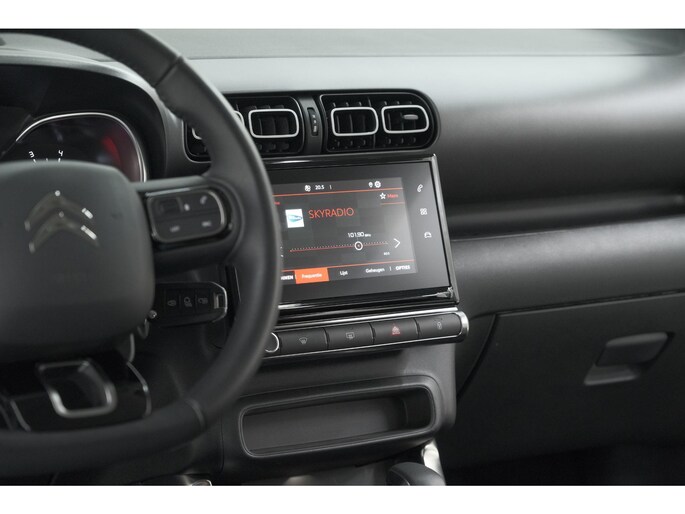 Omdat u nu eenmaal niet overal ogen heeft, is deze Citroen C3 Aircross voorzien van een achteropkomend verkeer waarschuwing die registreert wanneer de afstand tot uw achterligger te krap is. Het comfort wordt verhoogd door de aanwezige automatische airconditioning. Geniet van een ruime selectie digitale radiostations met de DAB-ontvanger. Geen parkeervak is te klein dankzij de assistentie van de parkeersensoren. De auto neemt u werk uit handen doordat hij zelf veel in de gaten houdt. Een regensensor en een automatisch inschakelbare verlichting nemen waar wanneer de ruitenwissers en het licht aan moeten. Wat u ook in deze auto kunt vinden zijn cruise control, buitentemperatuurmeter, lederen stuur, centrale deurvergrendeling met afstandsbediening en boordcomputer.