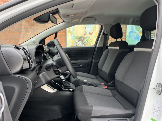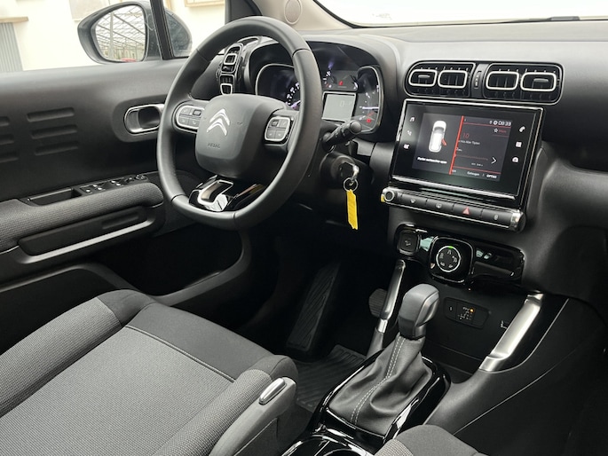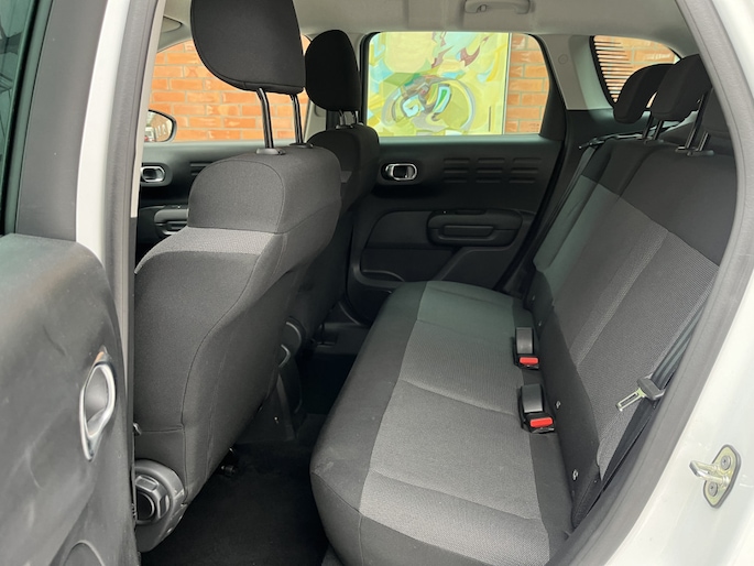 Zodra u naar de 'R' schakelt, gaat de achteruitrijcamera in werking en heeft u een perfect zicht op alles wat zich achter de auto afspeelt. De ingebouwde Connected Services vertellen u via de app alles over de status van de auto. Locatie, onderhoudsstatus, brandstofpeil en nog veel meer! De aanwezige DAB-radio komt perfect tot z'n recht door het topklasse audiosysteem. Omdat u nu eenmaal niet overal ogen heeft, is deze Citroën C3 Aircross voorzien van een achteropkomend verkeer waarschuwing die registreert wanneer de afstand tot uw achterligger te krap is. De auto is ook uitgevoerd met automatische airconditioning. Ook is de Citroën uitgerust met: regensensor, cruise control, buitentemperatuurmeter, lederen stuur, centrale deurvergrendeling met afstandsbediening en boordcomputer.