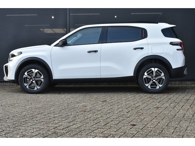 Uw nieuwe auto staat klaar voor vertrek. Stap gerust in, deze Citroen C3 Aircross heeft 3000 kilometer gelopen en is van het bouwjaar 2025. Deze hybride auto heeft een sterke, zuinige elektromotor én een verbrandingsmotor. Kortom: uitstekende rijprestaties en een veel lager brandstofgebruik. De comfortstoelen van deze Citroen C3 Aircross staan bekend om hun goede zithouding. Ook 17 inch lichtmetalen velgen, LED koplampen, geluidsisolerende ramen, in delen neerklapbare achterbank en LED-achterlichten zijn aan boord. Kommaar-kommaar-kommaar, aldus de achteruitrijcamera. Iedere centimeter vrije ruimte komt haarscherp in beeld. Schadevrij inparkeren maar! U weet altijd hoe de auto eraan toe is dankzij Connected Services. Ook handig voor de garage en de wegenwacht. Even de app uitlezen en klaar! In deze auto wordt u elke rit opnieuw bijgestaan door een gebruiksvriendelijk full map navigatiesysteem, terwijl u luistert naar het glasheldere geluid van het audio-installatiesysteem met DAB-radio. Geef uw smartphone onderweg weer energie; zonder snoer, met de draadloze oplaadmogelijkheid voor telefoons. Uiteraard voorzien van Qi-technologie. Het comfort wordt verhoogd door de aanwezige electronic climate control. Extra opties op deze auto zijn: regensensor, cruise control, automatisch dimmende binnenspiegel, centrale deurvergrendeling met afstandsbediening en verstelbaar stuur. Zoals u mag verwachten van deze Citroen C3 Aircross is hij uitgerust met een reeks aan actieve veiligheidssystemen. De head-up display is een geweldige extra: ogen op de weg en toch alle belangrijke functies in beeld! Bij de veiligheidssystemen van deze Citroen hoort ook de verkeersbord-detectie. Die leest tijdens het rijden als het ware met u mee en attendeert u op de significante verkeersborden langs en boven de weg. Keep your lane? Het Lane-keeping systeem zorgt er automatisch voor. Verder is deze auto uitgerust met dodehoekdetectie, hill hold functie, vermoeidheidsherkenning, autonoom remsysteem en bandenspanningcontrolesysteem. Wilt u met deze Citroen C3 Aircross een proefrit maken? Bel of mail ons dan nu voor een afspraak.
