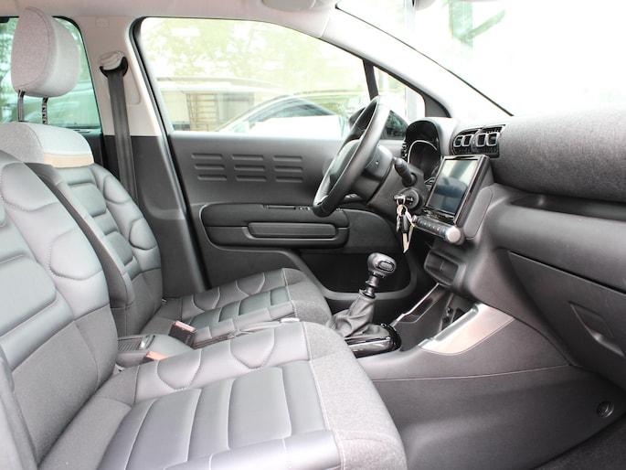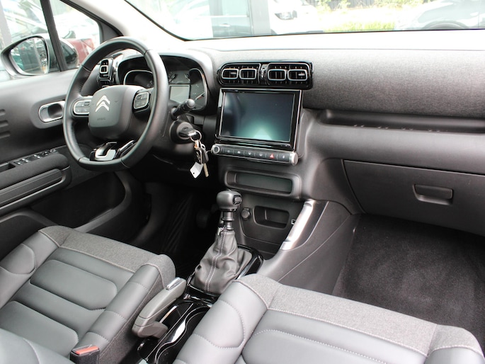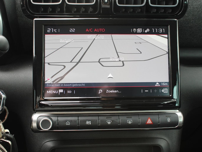 Een handige optie is de achteruitrijcamera. Achteruitrijden, inparkeren en manoeuvreren gaat gemakkelijker dan ooit. Dankzij de spraaksturing bedient u verschillende functies zonder uw handen van het stuur te halen. In één oogopslag weet u de complete systeemstatus van deze auto. Dankzij Connected Services. Wegwijs in elke wijk, stad of reisbestemming? Daarvoor zorgt het full map navigatiesysteem! Aan boord van deze Citroen C3 Aircross is een achteropkomend verkeer waarschuwing voor extra veiligheid. Ook automatische airconditioning, DAB ontvangst, regensensor, cruise control, automatisch dimmende binnenspiegel en lederen stuur zijn aan boord.