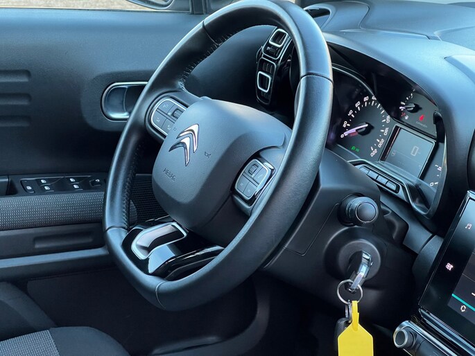 Zoals u mag verwachten van deze Citroen C3 Aircross is hij uitgerust met een reeks aan actieve veiligheidssystemen. Tijdens de rit hebt u altijd een bijrijder, want de verkeersbord-detectie leest de borden langs de weg en projecteert ze voor u op het instrumentarium. Het Lane-keeping systeem let constant op en waarschuwt of corrigeert als u onoplettend over de lijnen van de rijstrook gaat. Het systeem voor vermoeidheidsherkenning neemt het waar als uw concentratie verslapt en geeft u dan een waarschuwing. Ook helpen het hill hold functie, brake assist en bandenspanningcontrolesysteem, uw rit tot een veilige rit te maken.