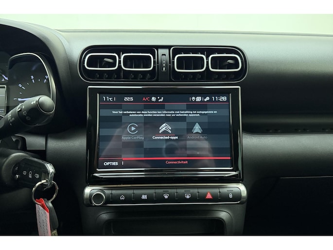 Als u regelmatig met een aanhanger of een fietsendrager op pad bent, is de afneembare trekhaak een praktische extra. Deze Citroen C3 Aircross is voorzien van remote services. Via uw smartphone bedient u diverse functies ook op afstand en krijgt u informatie over de status van uw auto. Het full map navigatiesysteem brengt u vlot naar uw bestemming, terwijl u luistert naar het glasheldere geluid van het audiosysteem met DAB-radio. Te weinig afstand tussen u en de achterligger? De sensoren registreren het direct en de achteropkomend verkeer waarschuwing geeft een signaal. Of het buiten nu warm is of koud, dankzij automatische airconditioning is het binnen altijd behaaglijk. En dan is deze auto ook nog eens voorzien van dashboard met spraakbediening, regensensor, cruise control, lederen stuur, centrale deurvergrendeling met afstandsbediening en boordcomputer.