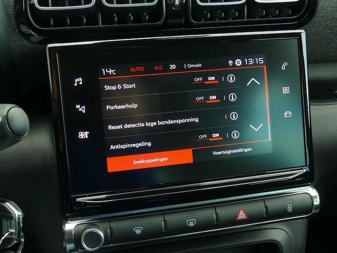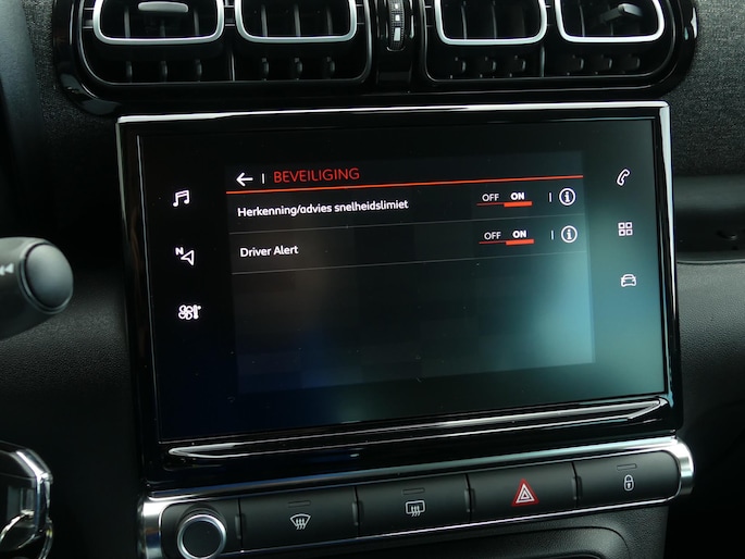 Deze Citroen biedt u niet alleen comfort en rijplezier, maar ook veiligheid. Actieve veiligheidssystemen houden voor u de weg in de gaten en reageren op onvoorziene situaties voordat u dat kunt. Tijdens de rit hebt u altijd een bijrijder, want de verkeersbord-detectie leest de borden langs de weg en projecteert ze voor u op het instrumentarium. Deze Citroen C3 Aircross is voorzien van lane assist: een slim en veiligheidverhogend rijhulpsysteem, dat waarschuwt bij onwillekeurig van strook wisselen. Bij een gevaarlijke situatie is remmen essentieel. De Brake Assist haalt het maximum uit de remcapaciteiten van deze Citroen C3 Aircross. De veiligheid van deze auto wordt verder verhoogd door hill start assist en bandenspanningcontrolesysteem.