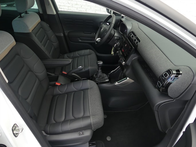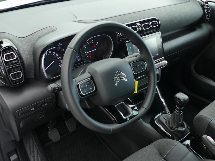 Met automatische airconditioning hoeft u alleen de gewenste temperatuur in te stellen. Het systeem doet de rest. Met de hulp van de parkeersensoren kost inparkeren en uitparkeren u geen enkele moeite. Achter het stuur van deze Citroen bent u niet alleen. De auto kijkt als het ware met u mee tijdens de rit. De regensensor schakelt de ruitenwissers in als het nodig is en de automatisch inschakelbare verlichting doet de lichten voor u aan. De cruise control zorgt voor zorgeloos, ontspannen en zuinig rijgedrag. Geen capriolen meer als u met armen vol de auto moet openen. De uitrusting van deze Citroen is met isofix-aansluiting, navigatie* middels smartphone integratie Apple Carplay & Android Auto, centrale deurvergrendeling met afstandsbediening, boordcomputer, in hoogte verstelbaar stuur en bekerhouder behoorlijk compleet.