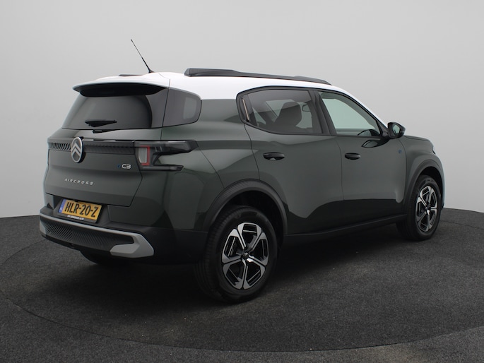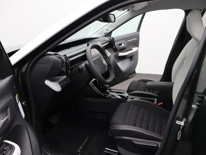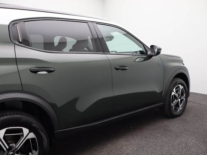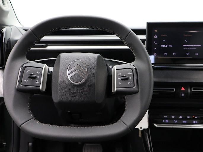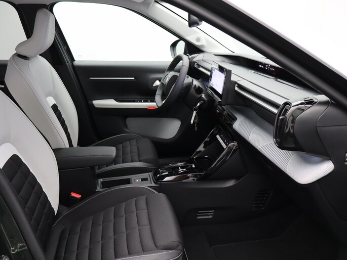 Stijlvol design en topprestaties zonder emissies. Deze Citroën ë-C3 Aircross verbindt elegante lijnen met krachtige elektrische aandrijving zonder schadelijke uitstoot. CO2-uitstoot? Met de elektromotor rijdt u stil en schoon! Hoewel de auto uit 2025 komt, heeft hij maar 7080 kilometer gereden. Onderweg zorgen de comfortstoelen voor een ontspannen rit. In deze auto profiteert u onder andere ook van: 17 inch lichtmetalen velgen, LED koplampen, adaptief dempingsysteem, geluidsisolerende ramen, dakspoiler en in delen neerklapbare achterbank. Nooit meer parkeerschade dankzij de achteruitrijcamera. Dankzij Connected Services weet u precies waar uw auto geparkeerd staat. Ook andere functies, zoals bandenspanning en brandstofniveau, zijn via de app altijd onder handbereik. U bedient het full map navigatiesysteem en het audio-installatiesysteem met DAB-radio via knoppen op het stuur, of zelfs met uw stem. Zo kunt u steeds uw aandacht gericht houden op de weg. Onderweg laadt u uw smartphone snoerloos op met behulp van de draadloze oplaadmogelijkheid voor telefoons. Electronic climate control verwarmt of koelt het interieur met een druk op de knop. En dan is deze auto ook nog eens voorzien van regensensor, cruise control, automatisch dimmende binnenspiegel, centrale deurvergrendeling met afstandsbediening en verstelbaar stuur. Deze Citroën is voorzien van verschillende intelligente veiligheidsvoorzieningen. Ze kijken tijdens het rijden als het ware met u mee, ze signaleren potentieel gevaarlijke situaties en in een aantal gevallen kunnen ze ook ingrijpen. Blik op de weg houden? U hoeft uw hoofd niet meer te draaien om het dashboard te zien, dankzij de head-up display. Dat de auto steeds meer taken van de bestuurder overneemt, merkt u bijvoorbeeld aan het systeem voor verkeersbord-detectie in deze Citroën. Ongemerkt buiten de rijstrook raken? Nee hoor, het Lane-keeping systeem waarschuwt en corrigeert. In deze Citroën vinden we verder een dodehoekdetectie, hill hold functie, vermoeidheidsherkenning, autonoom remsysteem en bandenspanningcontrolesysteem. Wilt u ook de sensatie ervaren van elektrisch rijden? Maak dan nu een afspraak.