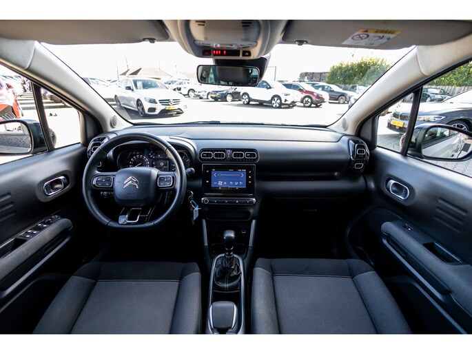 Zoals u mag verwachten van deze Citroën C3 Aircross is hij uitgerust met een reeks aan actieve veiligheidssystemen. De actuele snelheidslimiet, een inhaalverbod en andere verkeersborden; de verkeersborddetectie ondersteunt u tijdens elke rit. Een camera houdt de juiste koers binnen de rijstrook in de gaten en het Lane-keeping systeem corrigeert bij afwijkingen. Het systeem voor vermoeidheidsherkenning neemt het waar als uw concentratie verslapt en geeft u dan een waarschuwing. Dankzij veiligheidsvoorzieningen als hill hold functie, brake assist en bandenspanningcontrolesysteem, bent u steeds veilig onderweg.