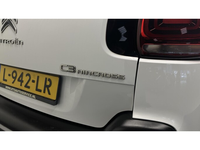 Veilig en comfortabel rijden wordt nog eens versterkt door Connected Services, zodat u diverse vitale functies van de auto altijd kunt checken in de app. Het audiosysteem met DAB-ontvangst en het navigatiesysteem bedient u veilig met knoppen op het stuurwiel of met gesproken commando's. Deze Citroen C3 Aircross is voorzien van sensoren aan de achterzijde om een achteropkomend verkeer waarschuwing te geven als de afstand tussen u en een achterligger te klein is. Geen parkeervak is te klein dankzij de assistentie van de parkeersensoren. De automatisch inschakelbare verlichting en regensensor zorgen dat onderweg automatisch de verlichting en de ruitenwissers worden ingeschakeld. Daarmee nemen ze u veel werk uit handen. Deze auto is voorzien van cruise control, airconditioning, buitentemperatuurmeter, lederen stuur, isofix-aansluiting en centrale deurvergrendeling met afstandsbediening.