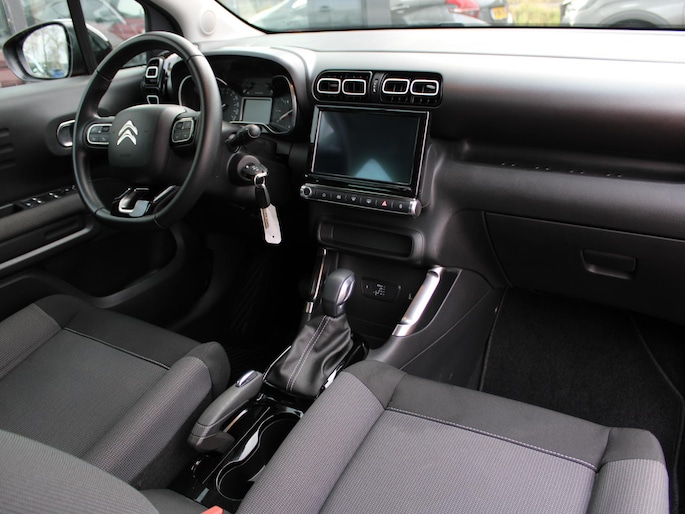 Alle technologie in de Citroen C3 Aircross is er op gericht om uw rit veilig en gemakkelijk te laten verlopen. In deze auto vindt u een benzinemotor en een automatische transmissie. Bij de complete uitrusting van deze auto hoort ook stoelverwarming. Tot de uitrusting van deze Citroen behoren ook 16 inch lichtmetalen velgen, LED koplampen, extra getint glas en in delen neerklapbare achterbank.