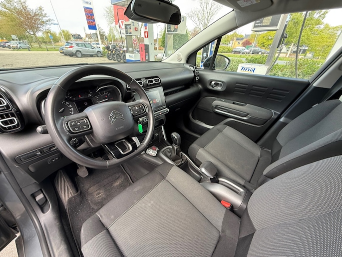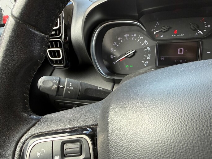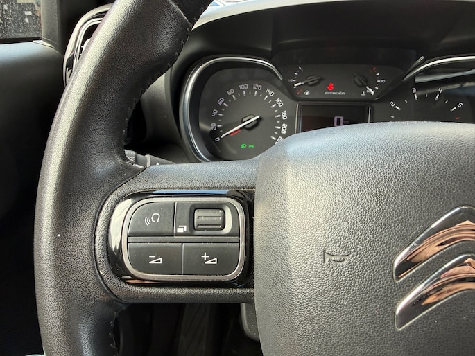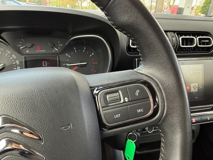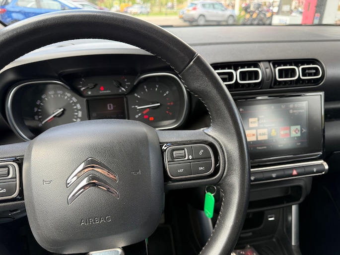 Uw smartphone wordt een dashboard, met alle functies in beeld. Dankzij Connected Services en de speciale app. Omdat u nu eenmaal niet overal ogen heeft, is deze Citroen C3 Aircross voorzien van een achteropkomend verkeer waarschuwing die registreert wanneer de afstand tot uw achterligger te krap is. Een andere zender zoeken of het volume wijzigen? Het audiosysteem heeft bediening op het stuur. De parkeersensoren waarschuwen wanneer u te krap inparkeert of dat ene paaltje niet hebt gezien. De cruise control heeft een feilloos geheugen. Als u even vaart heeft geminderd, bent u na één klik weer op de oude snelheid. Met airconditioning, lederen stuur, centrale deurvergrendeling met afstandsbediening en boordcomputer is deze auto helemaal compleet.