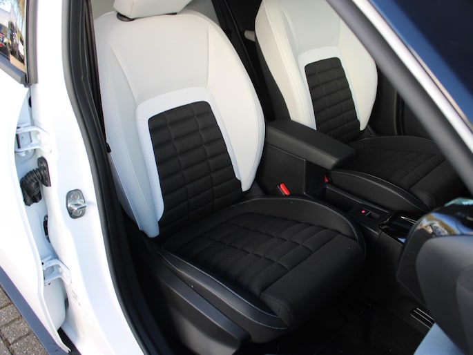 Ook achter de auto geen verrassingen bij het inparkeren. Daarvoor zorgt de achteruitrijcamera. Bij deze auto is uw smartphone een geavanceerde afstandsbediening. Remote services brengen u overal in contact met uw auto. In deze auto wordt u elke rit opnieuw bijgestaan door een gebruiksvriendelijk full map navigatiesysteem, terwijl u luistert naar het glasheldere geluid van het audio-installatiesysteem met DAB-radio. De auto is voorzien van een draadloze telefoonlader, dus geen snoeren nodig om de smartphone op te laden! Electronic climate control regelt volautomatisch de temperatuur. U kiest de gewenste temperatuur en het systeem doet de rest. Natuurlijk behoren regensensor, cruise control, automatisch dimmende binnenspiegel, centrale deurvergrendeling met afstandsbediening en verstelbaar stuur ook tot de uitrusting van deze complete auto.