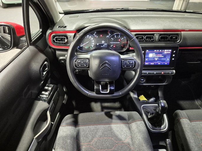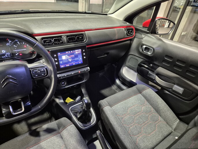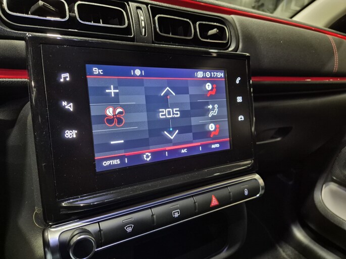 Zoals u mag verwachten van deze Citroën C3 is hij uitgerust met een reeks aan actieve veiligheidssystemen. De actuele snelheidslimiet, een inhaalverbod en andere verkeersborden. De verkeersborddetectie ondersteunt u tijdens elke rit. Indien u onbedoeld de rijstrook lijkt te verlaten, reageert het Lane-keeping systeem meteen en corrigeert. Het systeem voor vermoeidheidsherkenning neemt het waar als uw concentratie verslapt en geeft u dan een waarschuwing. Bovenop deze veiligheidsfeatures heeft deze Citroën bovendien hill hold functie, brake assist en bandenspanningcontrolesysteem.