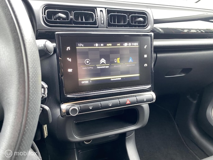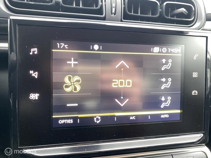 Locatie, motorconditie, storingen... via Connected Services krijgt u alle vitale info over de auto door. Ook handig bij pech! Het full map navigatiesysteem en het audiosysteem (met DAB-ontvangst!) bedient u met knoppen op het stuur of met gesproken commando's. Bij het wisselen van rijbaan kan een dode hoek ontstaan waardoor achterliggers te dichtbij kunnen komen. De achteropkomend verkeer waarschuwing geeft in dat geval automatisch een signaal. Tot de standaard uitrusting van deze auto hoort ook automatische airconditioning. U kunt bij het inparkeren natuurlijk niet aan alle kanten ogen hebben. Daarom is deze Citroen C3 voorzien van parkeersensoren! Ook regensensor, cruise control, automatisch dimmende binnenspiegel, lederen stuur, centrale deurvergrendeling met afstandsbediening en boordcomputer zijn aan boord.