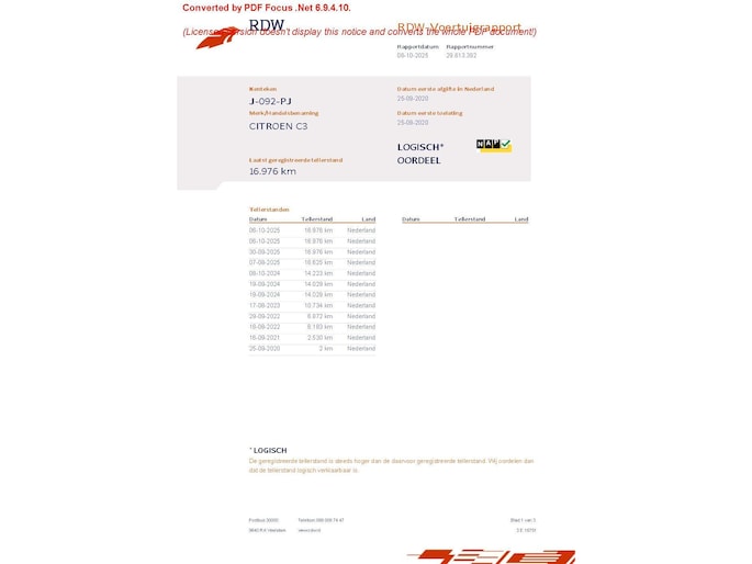 Kilometerstand gecontroleerd