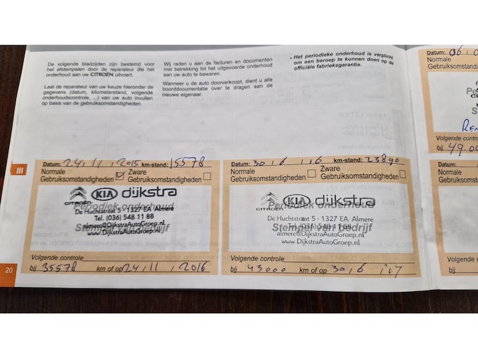 Onderhoudsboekjes: Aanwezig
