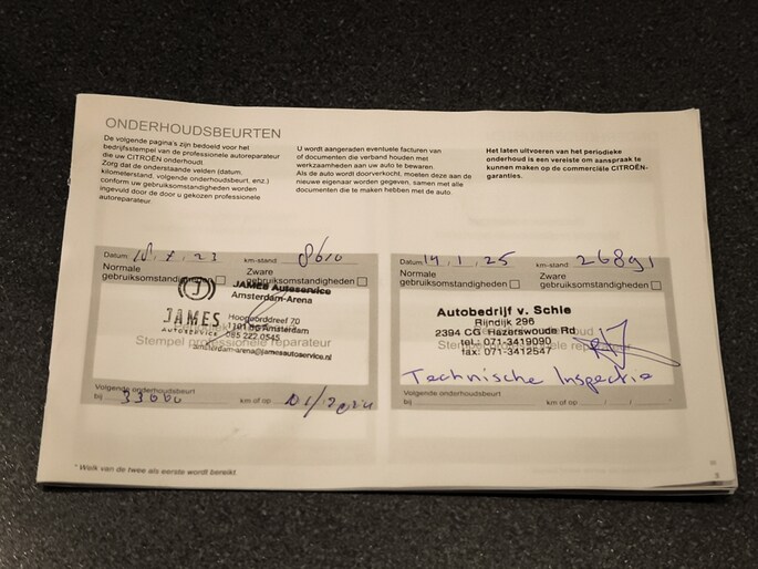 Onderhoudsboekjes: Aanwezig