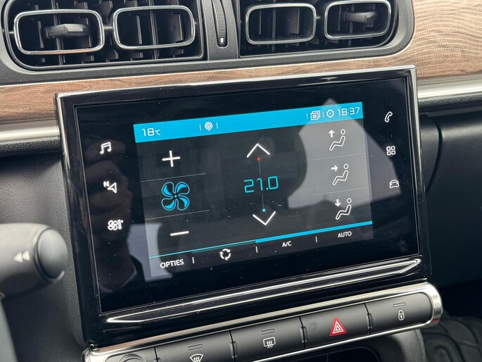 De conditie van deze auto is 24/7 inzichtelijk dankzij Connected Services. Het navigatiesysteem zorgt ervoor dat u altijd de juiste en snelste route vindt. Deze Citroën C3 is voorzien van sensoren aan de achterzijde om een achteropkomend verkeer waarschuwing te geven als de afstand tussen u en een achterligger te klein is. U verwacht natuurlijk automatische airconditioning in deze auto, en die is er dan ook. Via de schakelmogelijkheden op het stuur is de audiobediening veilig en eenvoudig. De Citroën is standaard voorzien van: DAB ontvangst, parkeersensoren achter, regensensor, cruise control, automatisch dimmende binnenspiegel en centrale deurvergrendeling met afstandsbediening.