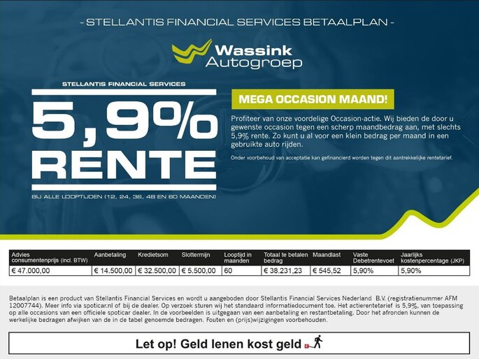 Vraag onze verkoopadviseurs naar de voorwaarden of kijk op onze website www.wassinkautogroep.nl voor meer informatie.