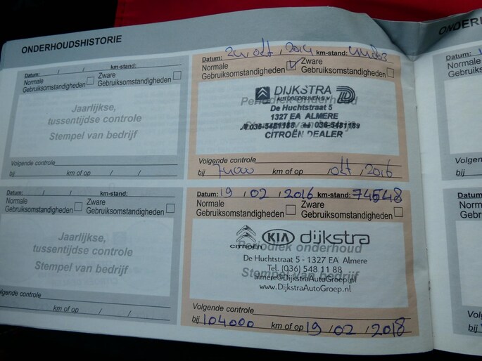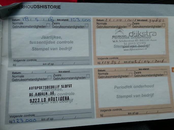 Onderhoudsboekjes: Aanwezig