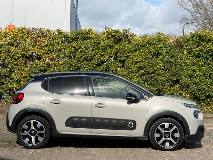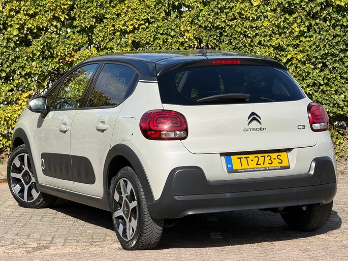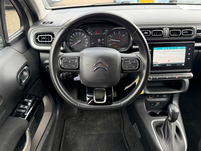 Met een auto als deze Citroen C3 komt u absoluut goed voor de dag. De aandrijving van deze Citroen wordt verzorgd door een driecilinder motor en een automatische transmissie. Bij de zeer complete uitrusting van deze auto behoren ook 17 inch lichtmetalen velgen, LED-dagrijverlichting, donker getint glas achter, in delen neerklapbare achterbank en snelheidsafhankelijke stuurbekrachtiging.