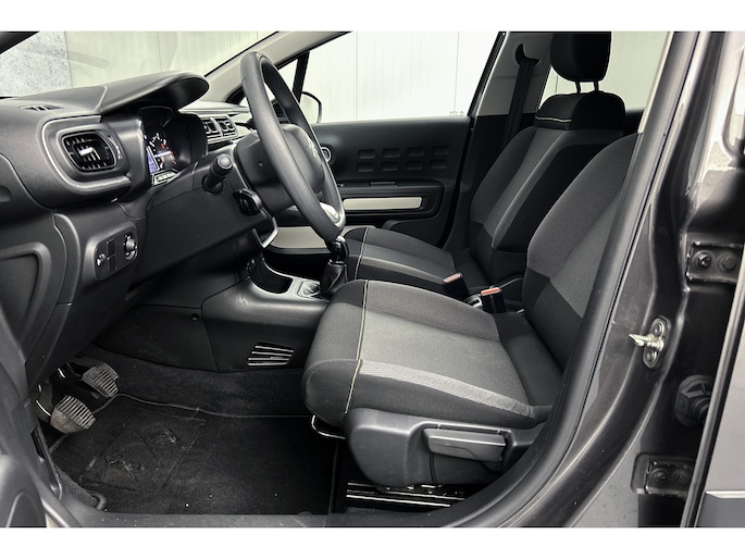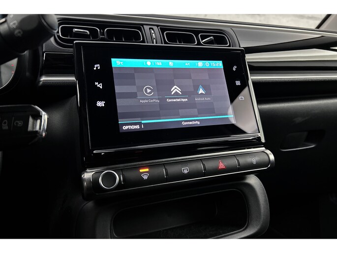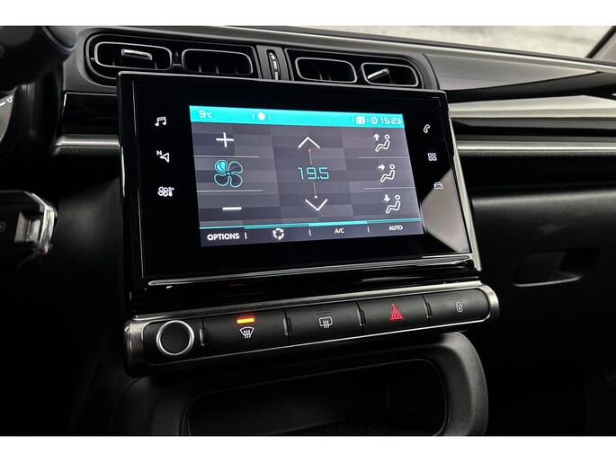 Als u regelmatig met een aanhanger of een fietsendrager op pad bent, is de afneembare trekhaak een praktische extra. Kilometerstand? Oliepeil? Accuspanning? Allemaal te zien via de app. Overal. Altijd. Dankzij Connected Services. Een belangrijke veiligheidsvoorziening is de bediening van het audio-installatiesysteem en het navigatiesysteem via knoppen op het stuur. Dab-ontvangst geeft daarbij een kraakheldere ontvangst. De achteropkomend verkeer waarschuwing bewaakt de afstand tot achterliggers en geeft een signaal als er te weinig ruimte is. Kom-maar-kom-maar...ho! Zo eenvoudig is het voordeel van parkeersensoren. En zo behulpzaam! Met regensensor, cruise control, airconditioning, automatisch dimmende binnenspiegel, centrale portiervergrendeling en boordcomputer is deze Citroën helemaal compleet.