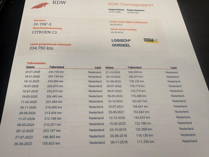 Kilometerstand gecontroleerd