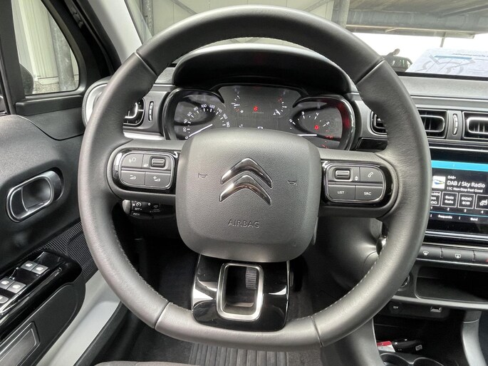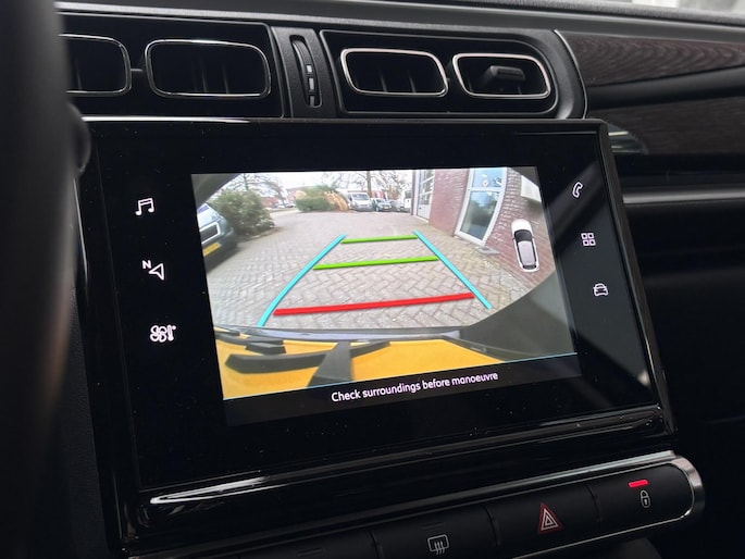 Hoeveel ruimte heeft u nog bij het inparkeren? De achteruitrijcamera brengt helder in beeld wat zich achter de auto bevindt en de parkeersensoren geven een geluidssignaal. Deze Citroen C3 is 'connected'. Belangrijke functies worden permanent gemeten en zijn uit te lezen via een speciale app, ook op afstand. Met het full map navigatiesysteem kiest u de snelste route naar uw eindbestemming. Bij het wisselen van rijbaan kan een dode hoek ontstaan waardoor achterliggers te dichtbij kunnen komen. De achteropkomend verkeer waarschuwing geeft in dat geval automatisch een signaal. Automatische airconditioning verwarmt of koelt het interieur met een druk op de knop. Deze Citroen is voorzien van DAB ontvangst, regensensor, cruise control, keyless entry & start met startknop, automatisch dimmende binnenspiegel en isofix-aansluiting.