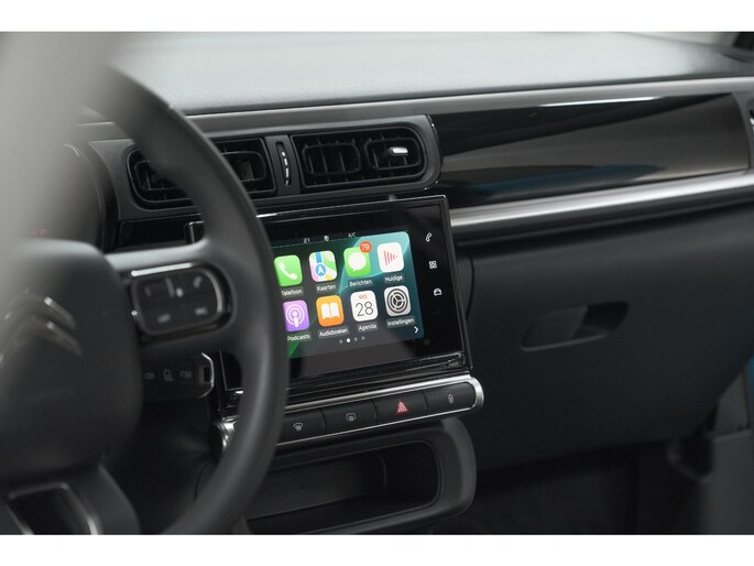 Zoals u mag verwachten van deze Citroen C3 is hij uitgerust met een reeks aan actieve veiligheidssystemen. In het instrumentarium laat de verkeersborddetectie de actuele verkeersborden zien. Deze Citroen C3 is ook behulpzaam als het gaat om een rechte koers. Het Lane-keeping systeem signaleert en corrigeert als u onbedoeld de rijstrooklijnen dreigt te overschrijden. In een noodsituatie waarschuwt forward collision warning bij een dreigende aanrijding met een voorligger. Dankzij veiligheidsvoorzieningen als hill hold functie, brake assist, vermoeidheidsherkenning en bandenspanningcontrolesysteem, bent u steeds veilig onderweg.