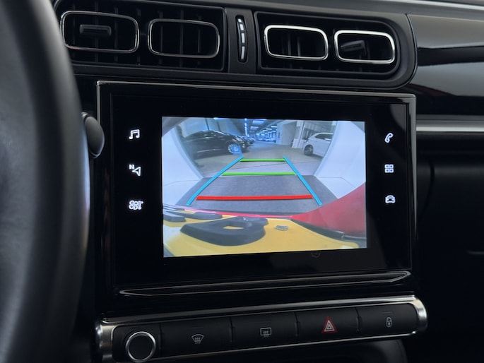 Afstand schatten bij het achteruitrijden? Niet nodig. U weet het precies, dankzij de achteruitrijcamera. In het zeldzame geval van een storing weet u nog eerder dan de monteur wat er mankeert. Uw smartphone met remote services geeft direct inzicht. U kunt het audiosysteem met DAB-ontvangst en het full map navigatiesysteem bedienen met de knoppen op het stuur of zelf met uw stem. De achteropkomend verkeer waarschuwing bewaakt de afstand tot achterliggers en geeft een signaal als er te weinig ruimte is. Nooit meer te warm of te koud. De automatische airconditioning zorgt altijd voor de temperatuur die u kiest. Ook is de Citroën uitgerust met: regensensor, cruise control, keyless entry, automatisch dimmende binnenspiegel, lederen stuur en centrale deurvergrendeling met afstandsbediening.