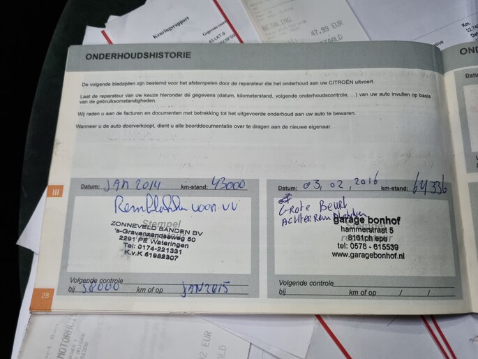 Onderhoudsboekjes: Aanwezig