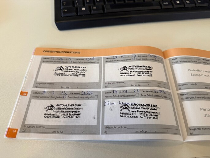 Onderhoudsboekjes: Aanwezig