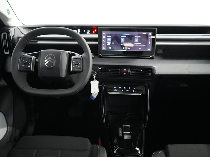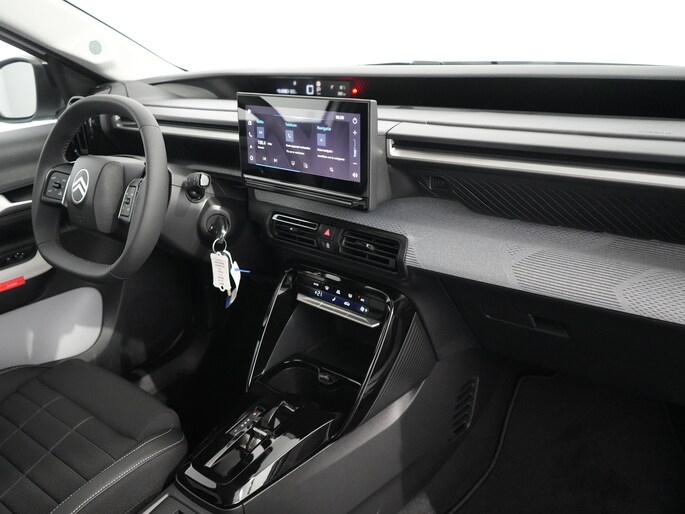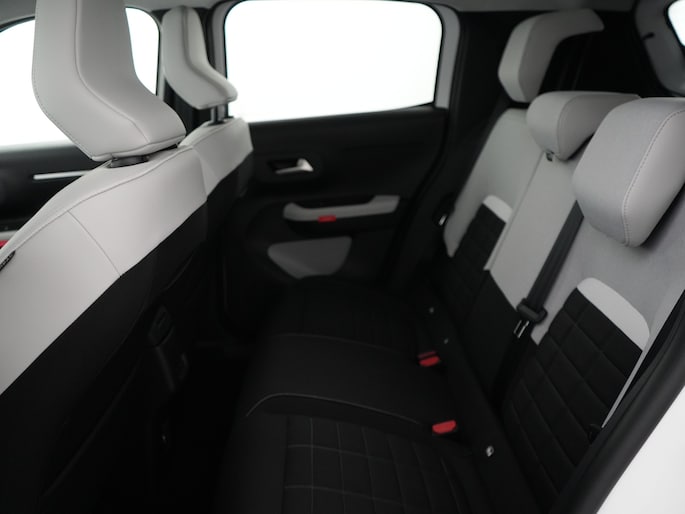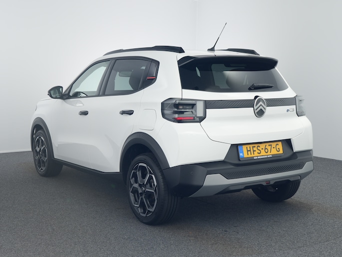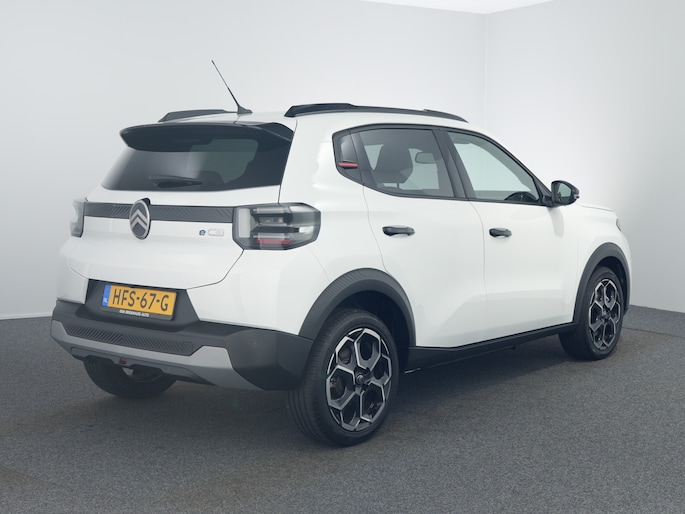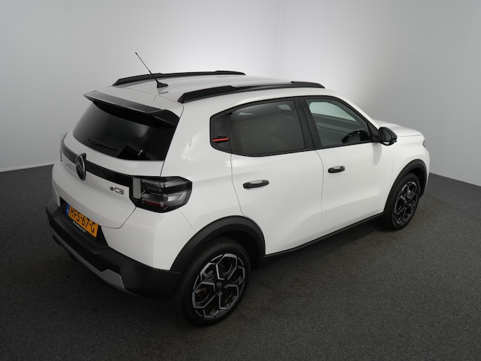 Hij biedt volop ruimte, deze Citroën ë-C3, en dankzij zijn elektrische aandrijving is er ook plenty vermogen voor een dynamische rijstijl. Met de elektromotor rijdt u stil en snel de toekomst in. Maar ook schoon en zuinig. Relaxt rijden? Dan zijn de comfortstoelen een regelrechte extra. Tot de uitrusting van deze Citroën behoren ook 17 inch lichtmetalen velgen, LED koplampen, geluidsisolerende ramen, dakspoiler, in delen neerklapbare achterbank en LED-achterlichten. Boem is ho? Dat is verleden tijd. De achteruitrijcamera laat precies zien hoeveel ruimte u achter nog heeft! Spraakbediening herkent uw stem en voert opdrachten uit terwijl u beide handen aan het stuur houdt. Kilometerstand? Oliepeil? Accuspanning? Allemaal te zien via de app. Overal. Altijd. Dankzij Connected Services. Kaartlezen is verleden tijd, dankzij het aanwezige full map navigatiesysteem. Met de electronic climate control selecteert u de gewenste temperatuur. Het systeem doet de rest. Ook is de Citroën uitgerust met: draadloos opladen, DAB ontvangst, regensensor, cruise control, automatisch dimmende binnenspiegel en centrale deurvergrendeling met afstandsbediening. Geavanceerde veiligheidssystemen kijken tijdens elke rit met u mee en schatten continu de risico's in. Recht voor u ziet u de weg én alle dashboardinformatie dankzij de head-up display De actuele snelheidslimiet, een inhaalverbod en andere verkeersborden. De verkeersborddetectie ondersteunt u tijdens elke rit. Het Lane-keeping systeem zorgt dat u mooi binnen de lijntjes blijft. Ongemerkt buiten de rijstrook komen is er niet meer bij. Verder is deze auto uitgerust met hill hold functie, vermoeidheidsherkenning, autonoom remsysteem en bandenspanningcontrolesysteem. Nergens vindt u zoveel oplaadpalen als hier, bij ons. Alle reden om te kiezen voor elektrisch rijden. Overtuig uzelf met een proefrit en maak vandaag nog een afspraak!