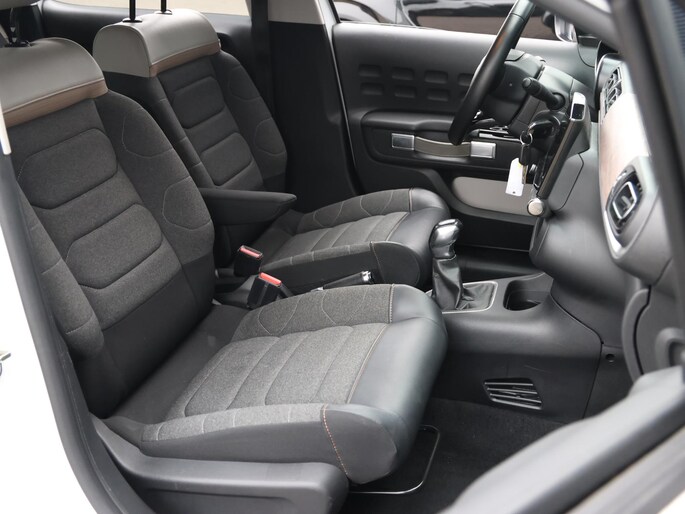 De nieuwste veiligheidssystemen komen in deze Citroen C3 samen. U rijdt ook veiliger omdat deze auto voor u de verkeersborden langs de weg kan lezen. De belangrijkste borden worden op uw instrumentarium geprojecteerd, zodat u ze niet kunt missen. Het Lane-keeping systeem zorgt dat u mooi binnen de lijntjes blijft. Ongemerkt buiten de rijstrook komen is er niet meer bij. De forward collision warning reduceert het gevaar van een botsing met een voorligger significant. Verder is deze auto uitgerust met hill hold functie, brake assist, vermoeidheidsherkenning en bandenspanningcontrolesysteem.