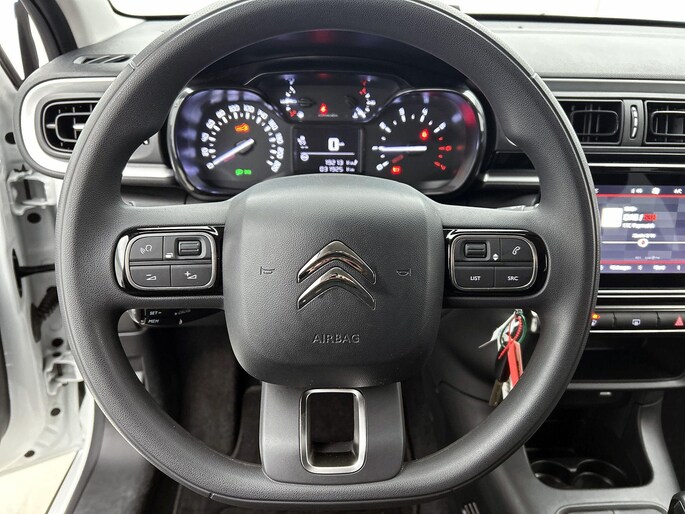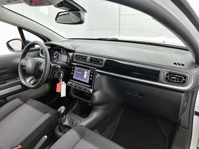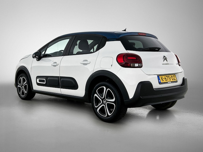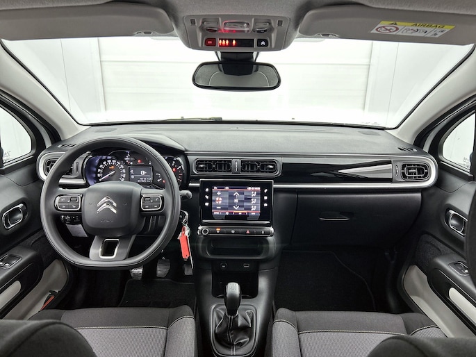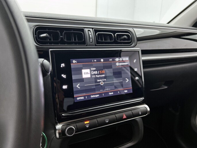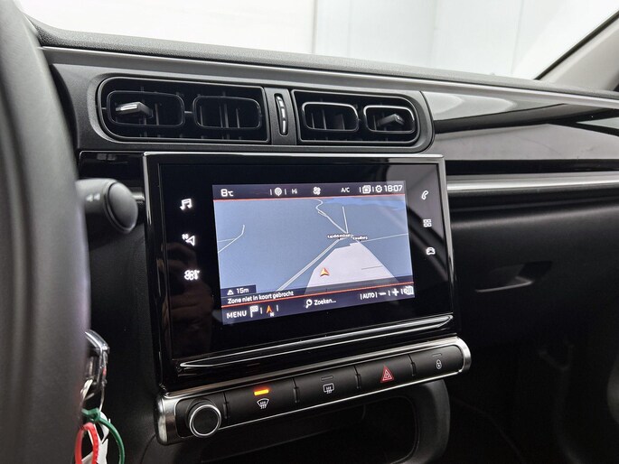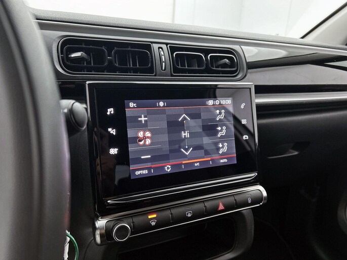 Deze Citroen C3 is voorzien van remote services. Via uw smartphone bedient u diverse functies ook op afstand en krijgt u informatie over de status van uw auto. U bedient het navigatiesysteem en het audiosysteem met DAB-radio via knoppen op het stuur. Zo kunt u steeds uw aandacht gericht houden op de weg. Te weinig afstand tussen u en de achterligger? De sensoren registreren het direct en de achteropkomend verkeer waarschuwing geeft een signaal. Automatische airconditioning verwarmt of koelt het interieur met een druk op de knop. De meeste schade bij inparkeren komt van een randje of paaltje dat u even niet zag. Maar de parkeersensoren zien alles en waarschuwen op tijd. U bent in deze Citroen ook voorzien van regensensor, cruise control, automatisch dimmende binnenspiegel, centrale deurvergrendeling met afstandsbediening, boordcomputer en verstelbaar stuur.
