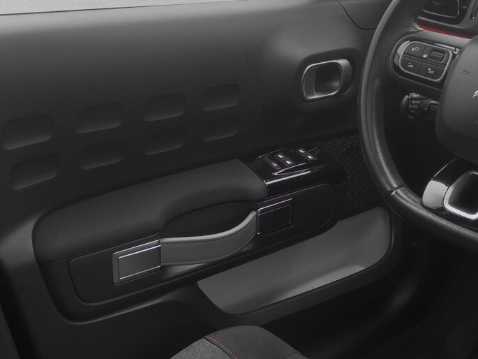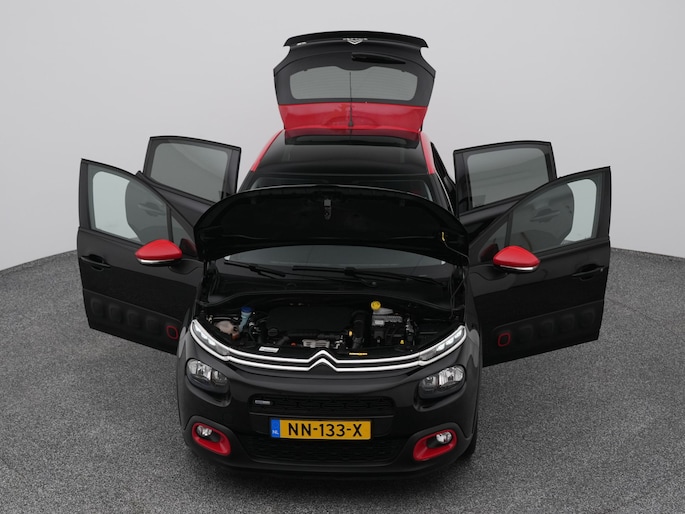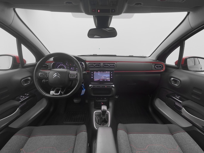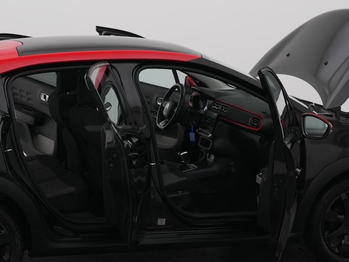Bescheiden van formaat maar o zo slim met ruimte, de Citroën C3. Met deze Citroën is een pittige rijstijl mogelijk, terwijl de motor toch spaarzaam met brandstof omgaat. Een weldaad voor u en uw bijrijder: deze Citroën C3 heeft verwarmbare voorstoelen. Het glazen panoramadak geeft ook doordeweeks een vakantiegevoel. Wat een licht en zicht! De uitmonstering van deze auto wordt gecompleteerd door onder meer 17 inch lichtmetalen velgen, LED-dagrijverlichting, donker getint glas achter en in delen neerklapbare achterbank.