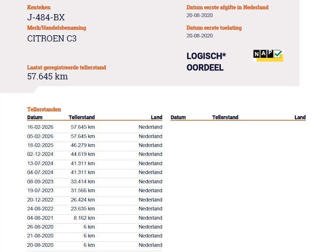 Kilometerstand gecontroleerd