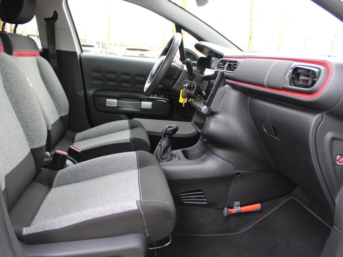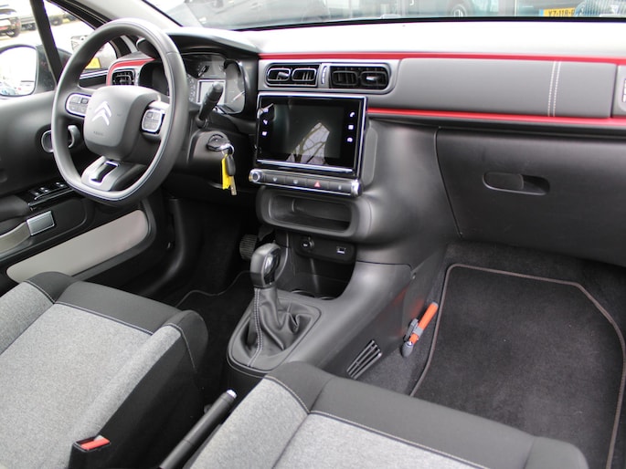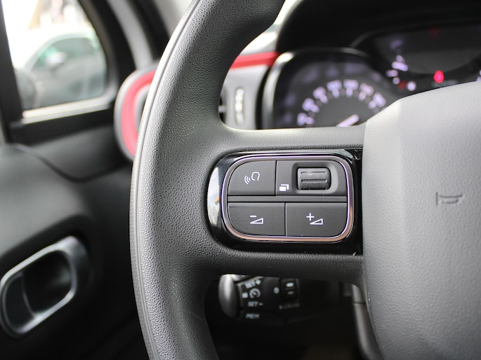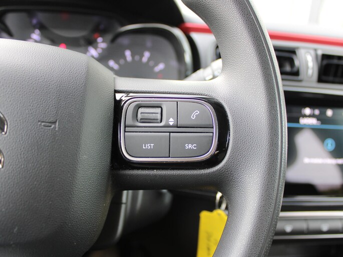Wat is de onderhoudsstatus van deze auto? U checkt het snel, simpel en overal via uw smartphone. Een goede veiligheidsvoorziening is de stuurbediening voor belangrijke functies. De auto is natuurlijk voorzien van een navigatiesysteem en het audiosysteem biedt glasheldere geluidskwaliteit dankzij DAB-ontvangst. Ook over uw schouder ziet u onderweg niet alles wat er aan de achterzijde gebeurt. Daarom heeft deze Citroen C3 een achteropkomend verkeer waarschuwing. Bij de luxe van deze auto hoort ook automatische airconditioning. Boem is ho? Niet bij deze Citroen C3. De piepjes van de parkeersensoren waarschuwen u op tijd voor obstakels. Deze Citroen is voorzien van regensensor, cruise control, automatisch dimmende binnenspiegel, centrale deurvergrendeling met afstandsbediening, boordcomputer en verstelbaar stuur.