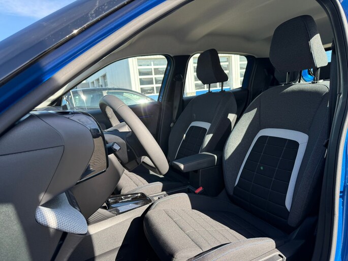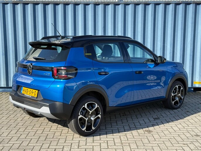 Milieuvriendelijke techniek gaat bij de Citroën ë-C3 hand in hand met soepele prestaties en uitgesproken design. Met zijn moderne accutechniek levert deze auto uitstekende prestaties, met een rijbereik dat genoeg is voor alle gewone ritten. En met een eigen laadpunt kunt u de accu's opladen terwijl u slaapt. De auto heeft een opmerkelijk lage kilometerstand van slechts 6530 De comfortstoelen van deze Citroën ë-C3 staan bekend om zijn goede zithouding. Ook LED koplampen, dakspoiler en in delen neerklapbare achterbank horen tot de voorzieningen op deze auto. Met uw smartphone maakt u overal contact met de auto. Remote services geven direct inzicht in uiteenlopende functies en zijn op afstand te activeren. Kies de muziek waarvan u houdt, dankzij de DAB-radio klinkt het altijd geweldig. Intussen bedient u het audio-installatiesysteem met de knoppen op het stuur of met uw stem. Kom-maar-kom-maar...ho! Zo eenvoudig is het voordeel van parkeersensoren. En zo behulpzaam! Achter het stuur van deze Citroën bent u niet alleen. De auto kijkt als het ware met u mee tijdens de rit. De regensensor schakelt de ruitenwissers in als het nodig is en de automatisch inschakelbare verlichting doet de lichten voor u aan. Nooit te snel, altijd constant: dat is het voordeel van de aanwezige cruise control. De Citroën is standaard voorzien van: airconditioning, centrale deurvergrendeling met afstandsbediening en verstelbaar stuur. Als bestuurder van deze Citroën bent u nooit alleen. U wordt onderweg bijgestaan door technologische hulpmiddelen die samen met u de weg in de gaten houden. Als het nodig is, grijpen ze zelfs in, door te remmen of bij te sturen. Rijden met het overzicht van een straaljagerpiloot? De praktische en veilige head-up display projecteert dashboardinfo binnen uw gezichtsveld, zodat u uw blik nooit hoeft te verplaatsen. Oog op de weg! Een belangrijke bijdrage aan de veiligheid onderweg levert de verkeersbord-detectie in deze Citroën. Het Lane-keeping systeem zorgt dat u mooi binnen de lijntjes blijft. Ongemerkt buiten de rijstrook komen is er niet meer bij. Met voorzieningen als hill hold functie, vermoeidheidsherkenning, autonoom remsysteem en bandenspanningcontrolesysteem, bent u altijd veilig onderweg. Deze elektrische auto staat klaar met een volle accu. Een proefrit maken is zo geregeld. Neem even contact op en we maken een afspraak!