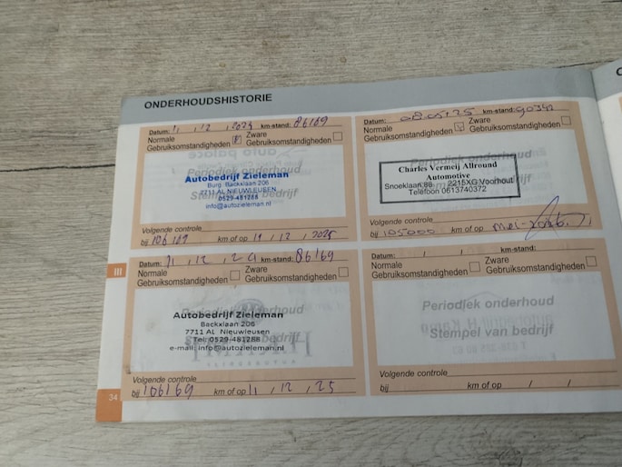 Onderhoudsboekjes: Aanwezig