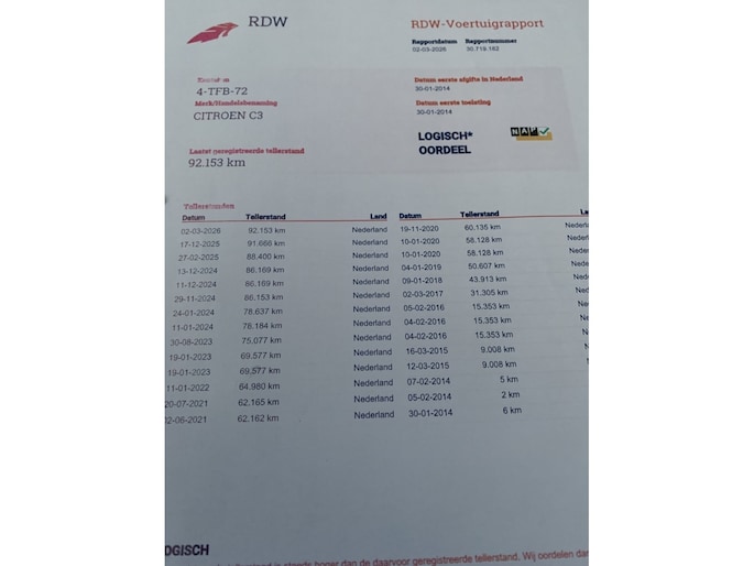 Kilometerstand gecontroleerd