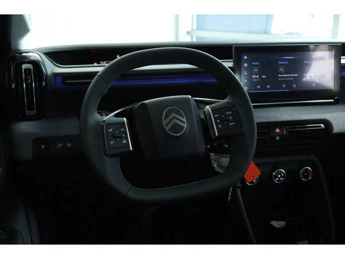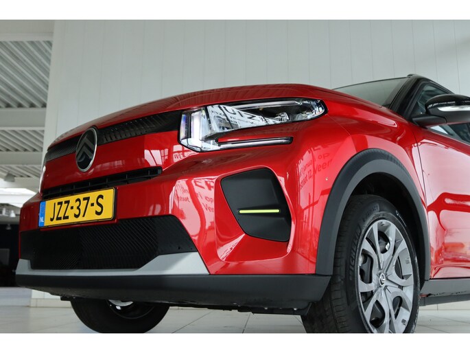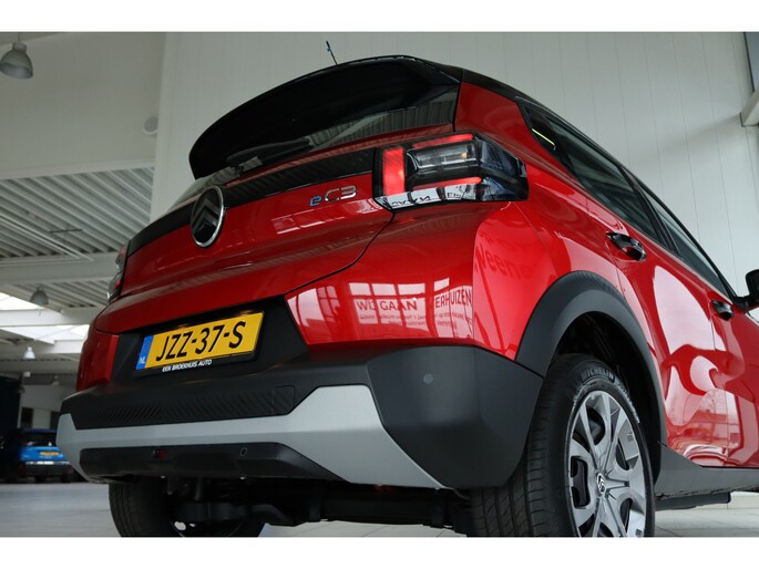 Citroën heeft de auto opnieuw uitgevonden. De volledig elektrische Citroën ë-C3 is duurzaam, maar biedt tegelijk veel rijcomfort en geweldige prestaties. De techniek van deze auto is radicaal anders dan u gewend bent. U rijdt zacht zoemend naar uw bestemming, de actieradius van de accu's is ruimschoots voldoende voor de meeste dagelijkse ritten. Het gaat hier om een nieuwe auto, hij is nu direct leverbaar. Elke rit de perfecte zit met de heerlijke comfortstoelen. Bij de uitrusting van deze Citroën horen onder meer LED koplampen, dakspoiler en in delen neerklapbare achterbank. Bij deze auto is uw smartphone een geavanceerde afstandsbediening. Remote services brengen u overal in contact met uw auto. Een optie die de veiligheid verhoogt, is de bediening vanaf het stuur van het audio-installatiesysteem (met DAB-radio!) en het full map navigatiesysteem. Battery low? Even op de draadloze telefoonlader en gaan! De automatische airconditioning zorgt onder alle omstandigheden voor een prettige temperatuur. Parkeersensoren zijn een handig hulpmiddel om parkeerschades te voorkomen. Met regensensor, cruise control met snelheidsbegrenzer, isofix-aansluiting, centrale deurvergrendeling met afstandsbediening en in hoogte en diepte verstelbaar stuur is deze auto helemaal compleet. Geavanceerde technische systemen houden tijdens elke rit het verkeer in de gaten en reageren op potentieel gevaarlijke situaties. Da's veilig! Alle informatie geprojecteerd op de voorruit via head-up display, zodat u uw ogen op de weg kunt houden! Verkeersborddetectie herkent tijdelijke en permanente verkeersborden langs en boven de weg. Met het Lane-keeping systeem gaat u nooit onbedoeld over de streep. De auto is ook uitgerust met driver alert systeem, hill start assist, brake assist, vermoeidheidsherkenning en bandenspanningcontrolesysteem. Hebben we uw interesse gewekt? Deze ë-C3 staat nu voor u klaar, u bent van harte welkom om hem te komen bekijken. Dan vertellen we u ook meteen over de financieringsvormen die we u kunnen aanbieden. Belt u ons vandaag nog?