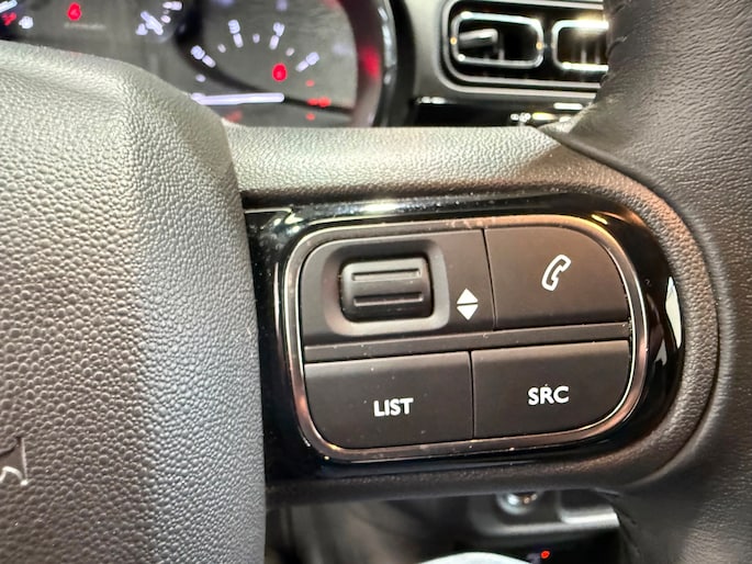 Een belangrijke veiligheidsvoorziening is de bediening van het audiosysteem en het navigatiesysteem, via knoppen op het stuur en middels spraakbediening. DAB-ontvangst geeft daarbij een kraakheldere ontvangst. De sensoren van de achteropkomend verkeer waarschuwing houden zicht op de dode hoeken achter u. Te weinig afstand tot de achterligger? Het systeem geeft direct een signaal. De auto is ook uitgevoerd met automatische airconditioning. Parkeersensoren ondersteunen u tijdens het in- en uitparkeren. Natuurlijk is een complete auto als deze ook voorzien van sensoren die de omgeving in de gaten houden. Deze Citroen heeft niet alleen een automatisch inschakelbare verlichting aan boord, maar ook een regensensor. Ook cruise control, automatisch dimmende binnenspiegel, centrale deurvergrendeling met afstandsbediening, boordcomputer en verstelbaar stuur horen tot de voorzieningen op deze auto.