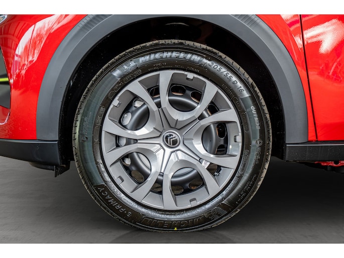 • 16" stalen velgen met 205/55 R16 banden en wieldoppen 'Pyrite'