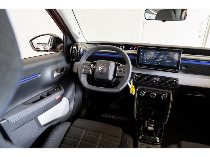 Iedere rit in een elektrische auto is een weldaad: u rijdt ontspannen en in alle rust, er is volop vermogen en u komt verkwikt op uw bestemming aan. CO2-uitstoot? Met de elektromotor rijdt u stil en schoon! Deze gloednieuwe wagen is onmiddellijk uit voorraad leverbaar. Ook in delen neerklapbare achterbank en dagrijverlichting zijn aan boord. Kabels niet nodig, de draadloze telefoonlader laadt uw smartphone al rijdend bij. Natuurlijk is er ook automatische airconditioning aanwezig. Geen parkeervak is te klein dankzij de assistentie van de parkeersensoren. Bij slecht weer houdt u graag de handen aan het stuur. De regensensor regelt automatisch hoeveel hulp u van de ruitenwissers nodig heeft. De cruise control heeft een feilloos geheugen. Als u even vaart heeft geminderd, bent u na één klik weer op de oude snelheid. Ook is de Citroën uitgerust met: isofix-aansluiting, centrale deurvergrendeling met afstandsbediening en in hoogte en diepte verstelbaar stuur. De intelligente veiligheidssystemen in deze auto waken continu over uw veiligheid. Onderweg fungeert de verkeersbord-detectie als het ware als uw bijrijder en attendeert u op de verkeersborden langs de weg. De lane assist dirigeert u weer naar het midden van uw rijstrook als u buiten de lijnen dreigt te gaan. Wanneer u hard moet remmen, is elke decimeter verkorting van de remweg essentieel. Voor extra remkracht zorgt dan de Brake Assist. Dankzij veiligheidsvoorzieningen als driver alert systeem, hill start assist en bandenspanningcontrolesysteem, bent u steeds veilig onderweg. Vanzelfsprekend leveren wij deze nieuwe auto met volledige fabrieksgarantie. We maken graag een afspraak met u om deze ë-C3 bij ons te komen bekijken.