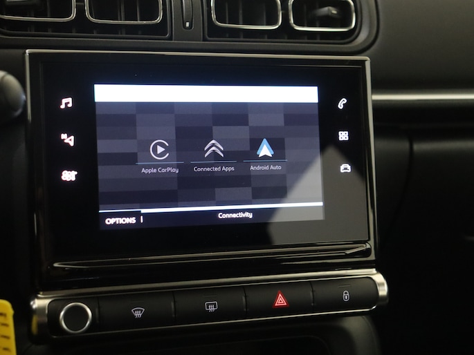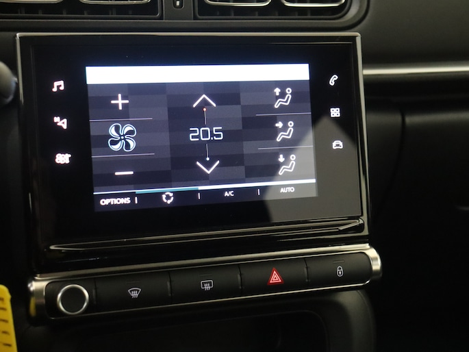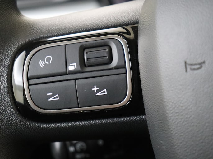 Zoals u mag verwachten van deze Citroën C3 is hij uitgerust met een reeks aan actieve veiligheidssystemen. De actuele snelheidslimiet, een inhaalverbod en andere verkeersborden; de verkeersborddetectie ondersteunt u tijdens elke rit. Het Lane-keeping systeem doet precies wat nodig is: waarschuwen en corrigeren bij onbedoelde overschrijding van de rijstrooklijnen. Forward collision warning waarschuwt bij een dreigende aanrijding met een voorligger. Bovenop deze veiligheidsfeatures heeft deze Citroën bovendien hill hold functie, brake assist, vermoeidheidsherkenning en bandenspanningcontrolesysteem.
