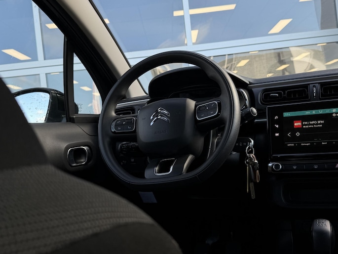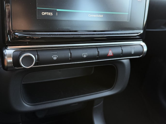 Via uw smartphone en Connected Services checkt u eenvoudig de belangrijke functies van de auto, overal en altijd. Houdt uw ogen op de weg en uw handen aan het stuur. Het audiosysteem en het full map navigatiesysteem bedient u vanaf het stuurwiel en met spraakbediening. Ook over uw schouder ziet u onderweg niet alles wat er aan de achterzijde gebeurt. Daarom heeft deze Citroen C3 een achteropkomend verkeer waarschuwing. Hoeveel ruimte u nog heeft bij het insteken? De parkeersensoren laten het weten! Da's gemakkelijk! De automatisch inschakelbare verlichting en regensensor zorgen dat onderweg automatisch de verlichting en de ruitenwissers worden ingeschakeld. Daarmee nemen ze u veel werk uit handen. Ook is de Citroen uitgerust met: cruise control, airconditioning, automatisch dimmende binnenspiegel, centrale deurvergrendeling met afstandsbediening, boordcomputer en verstelbaar stuur.